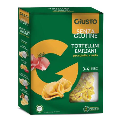 Giusto SENZA GLUTINETORTELLINI EMILIANI Descrizione Tortellini emiliani al prosciutto crudo. Ingredienti Pasta all' uovo 70% [miscela di farine (farina di mais, amido di mais, farina di riso, fecola di patate, farina di pisello, fibre vegetali, aromi naturali) uova 26%, olio di semi di girasole], ripieno mortadella–prosciutto 30% [mortadella 31% (carne di suino, sale, aromi naturali, spezie; antiossidante: ascorbato di sodio; conservante: nitrito di sodio), prosciutto crudo 21% (carne di suino, sale; conservante: nitrato di potassio), preparato di mais (farina di mais, olio di semi di girasole), Parmigiano reggiano 12% ( latte, c...