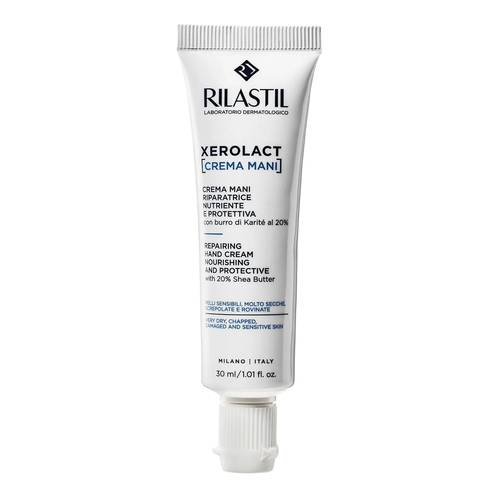 RILASTILXEROLACT CREMA MANI Descrizione Crema mani per pelle sensibile, molto secca o screpolata, dalla texture ricca ma non grassa e di facile assorbimento. Con burro di karitè al 20% ed estratto di Schisandra chinensis, crea un film protettivo di lunga durata che protegge dalle aggressioni esterne, nutre, idrata e ripara la pelle screpolata, restituendo comfort immediato ed elasticità. Componenti Aqua (water), Butyrospermum parkii (shea) butter, glycerin, isohexadecane, betaine, glyceryl stearate, PEG-100 stearate, cetearyl alcohol, polymethyl methacrylate, Schizandra chinensis fruit extract, polyacrylate-13, polyisobutene, ethyl v...